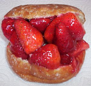 Okay, how about food on food? This yummy strawberry donut looks wonderfully sinful delicious. Yummy!